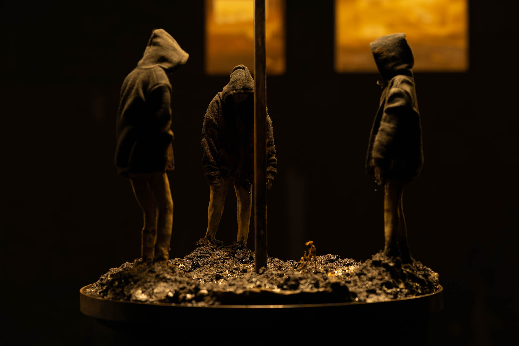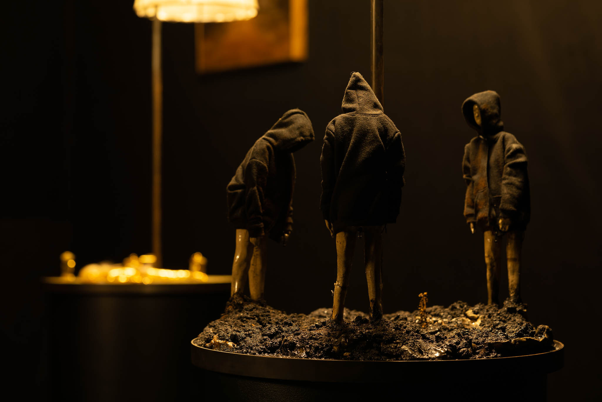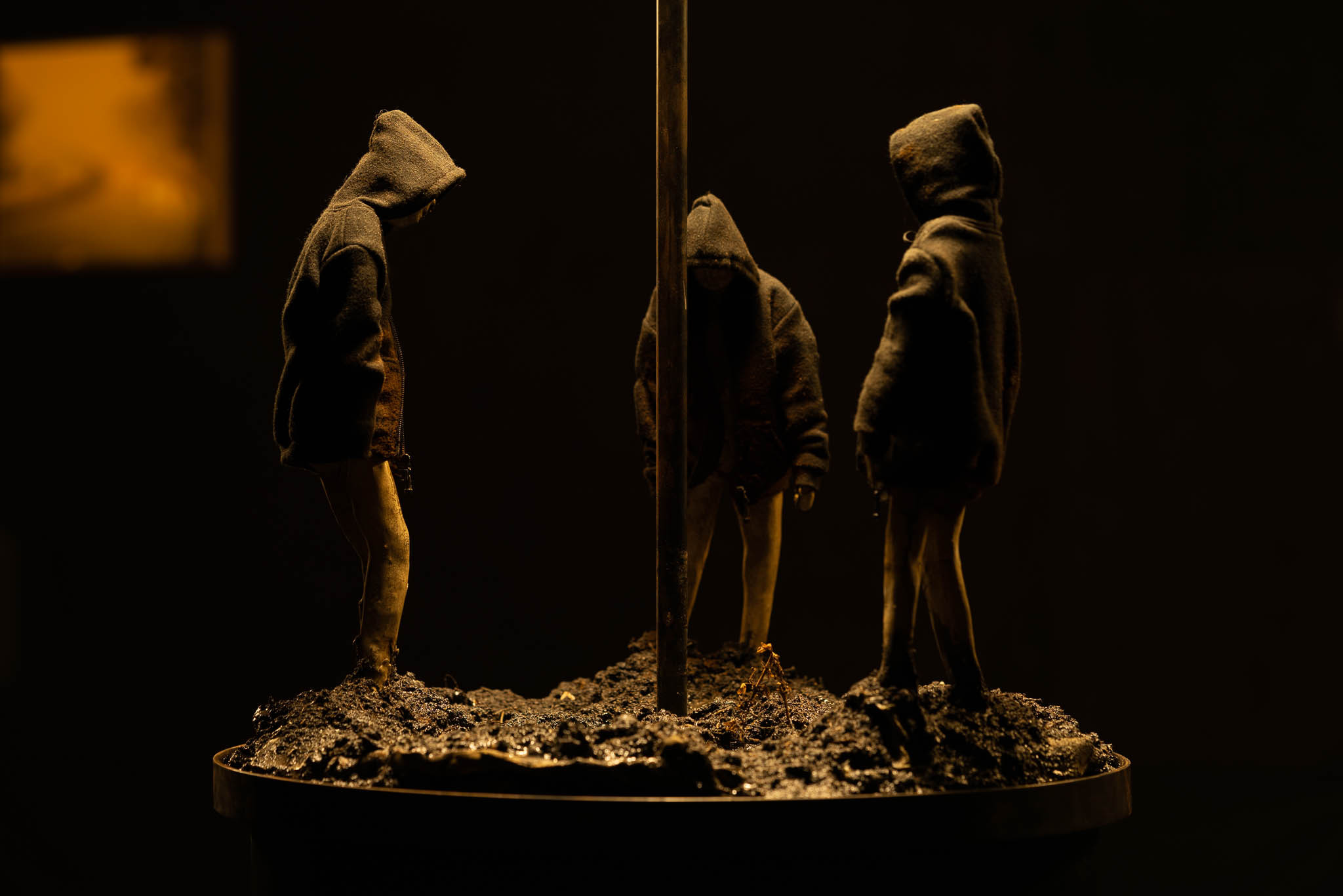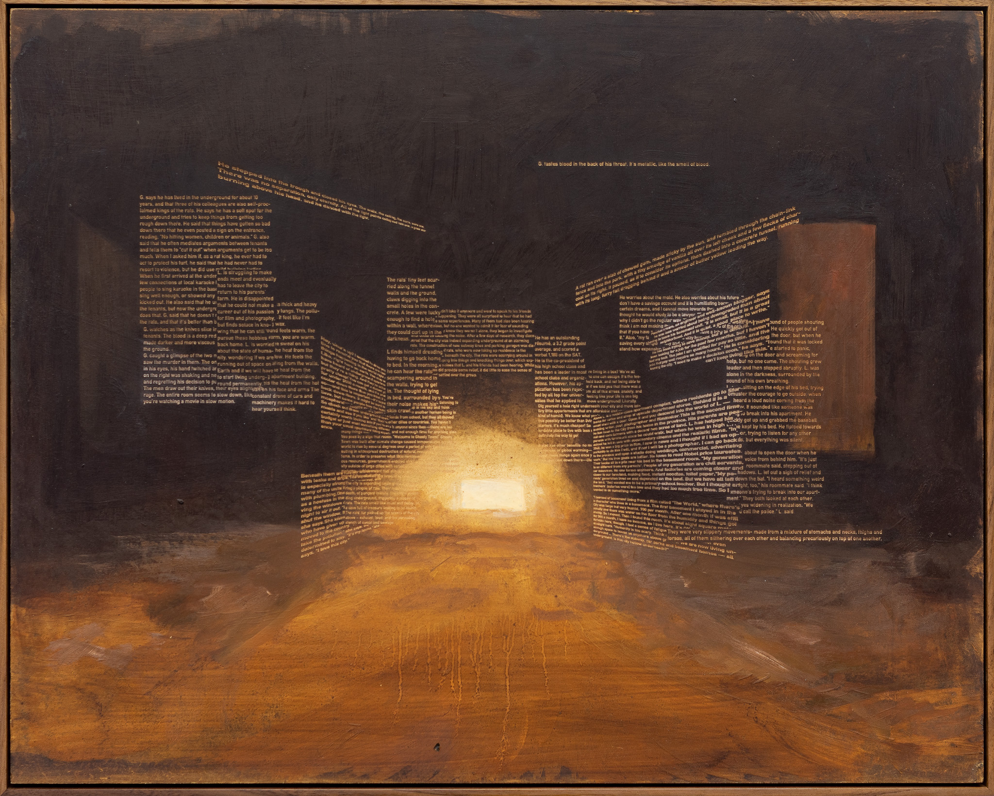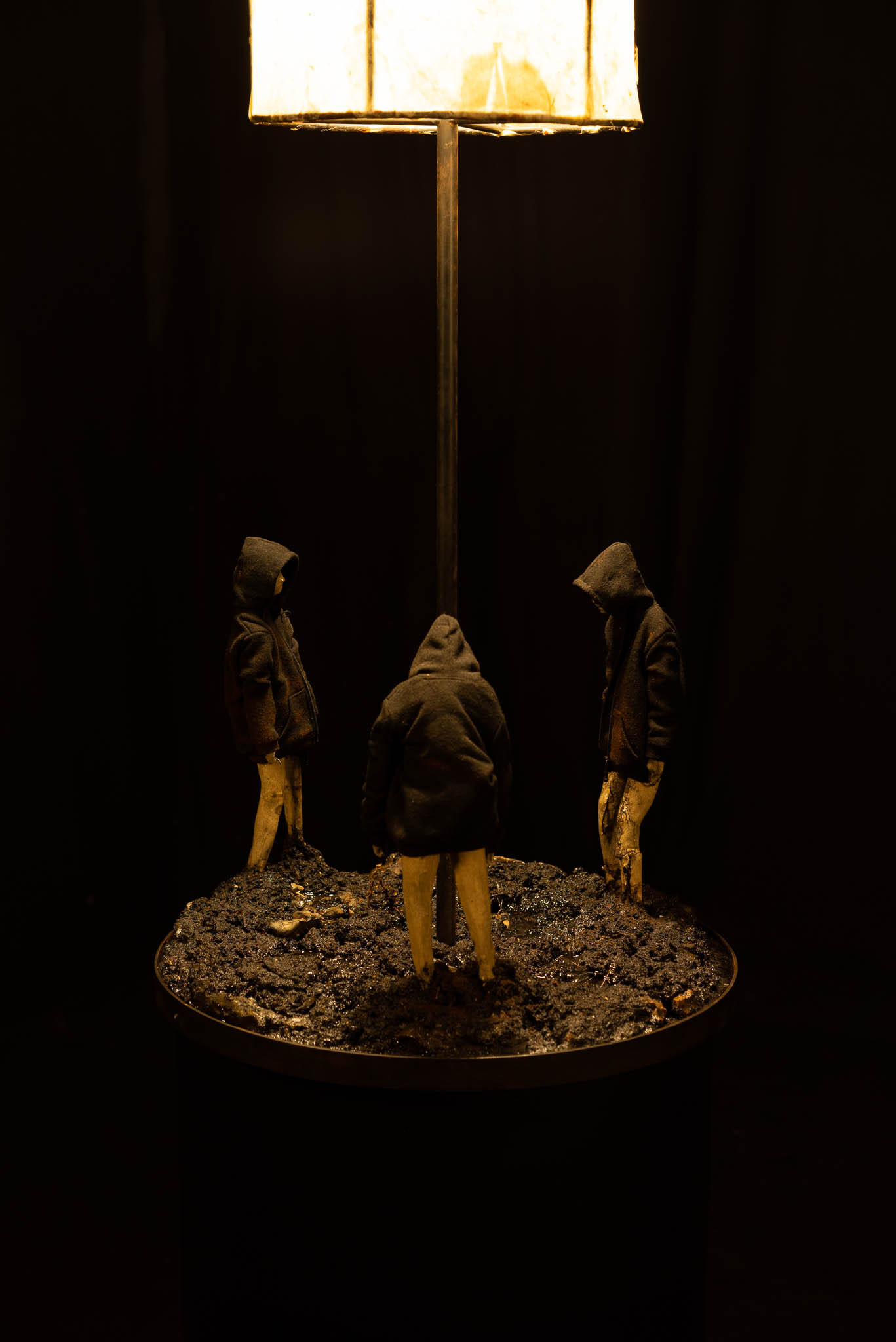 Fernab der Hauptstraße: Dort wo man die Lichter sehen kann, weil sie einen selbst nicht sehen können. Als würden sie sich in ein tiefes Loch setzen oder hineinfallen, es ist klamm und jeder Ton bleibt dumpf. Ich selbst verbrachte ein ganzes Jahr unter der Erde, neben einer Straße, auf der die Autos nur bei Nebel fuhren. In der Dunkelheit sah ich viel. Auch die Menschen sah ich. All jene, deren Füße über Pfennige wateten, die weggeworfen wurden, um des vermeintlichen Glückes Willen. *Ihre Bewegungen waren langsam und gesetzt, und ihre braunen, erdigen Kleider verliehen ihnen eine Ähnlichkeit mit großen Erdkäfern, die mit dem Vergraben ihrer Nachkommenschaft beschäftigt sind.4 Stoische Schleifen eines Vorgangs, die um ein Zentrum kreisen, das keines ist. Denn, sie glauben es vielleicht nicht, doch der statuarische Eindruck der Dunkelheit ist ein Trug. Tatsächlich bewegt sie nicht nur sich selbst, sondern auch alles andere. Aus der Tiefe blickend konnte ich Wesen erkennen, deren Gestalt sich nicht über ihre Form definierte, sondern über ihr Gefühl.