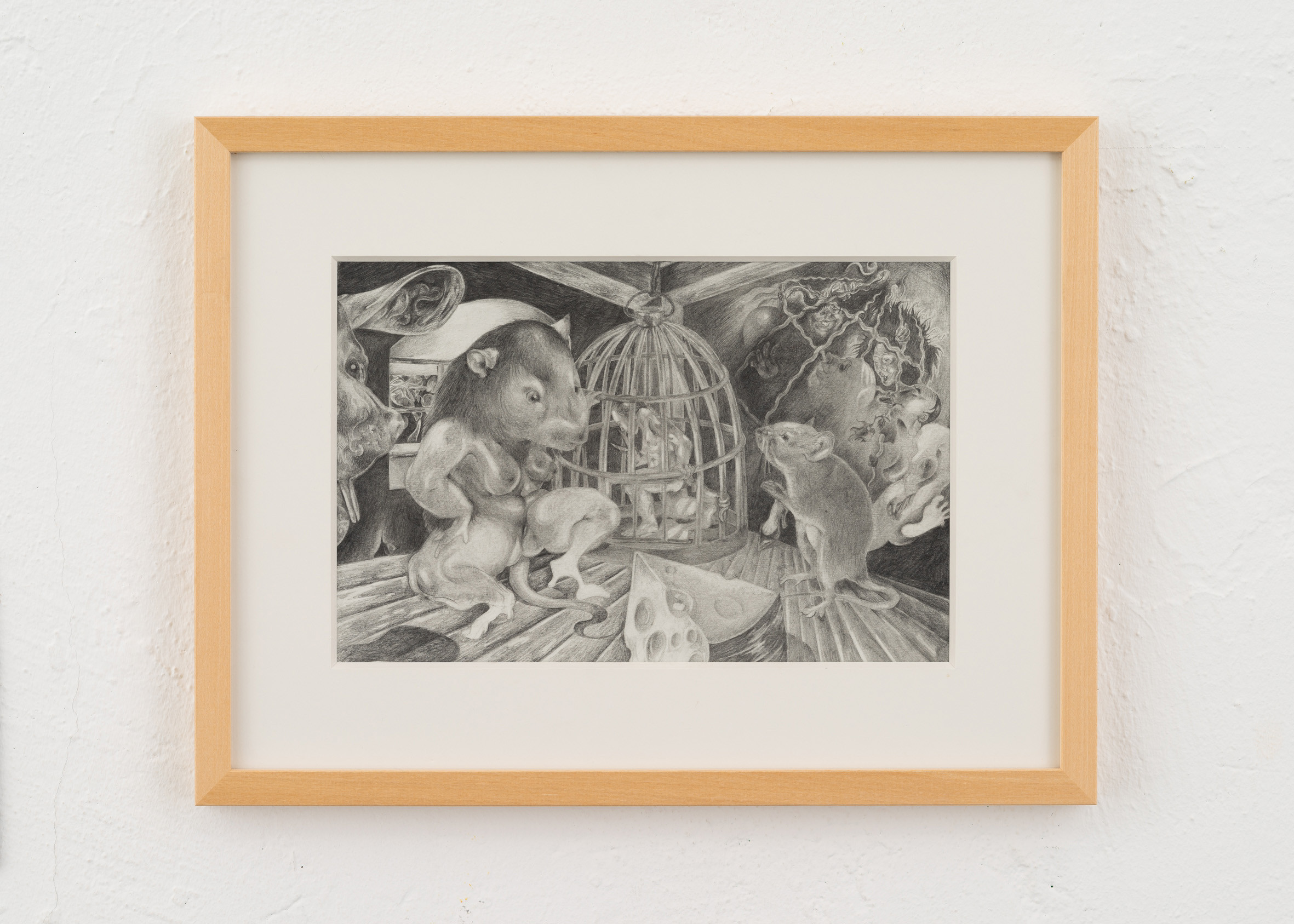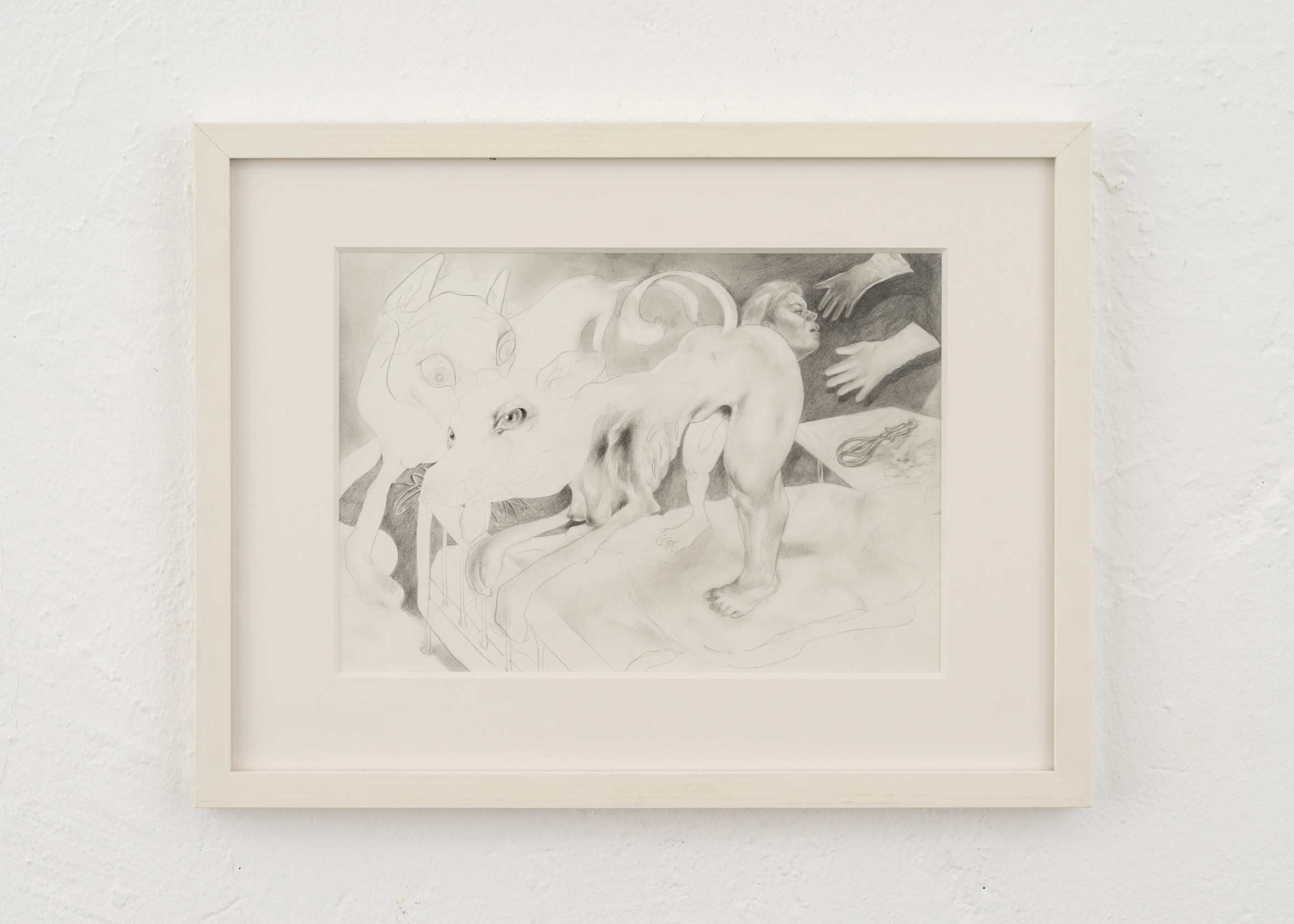 Nur der Hund darf hier die Regeln brechen, extrem nerven, die Nachbarschaft terrorisieren. Der Zeichnungszyklus begleitet die Verwandlung der Künstlerin in einen Golden Retriever, die durch eine ortsbezogene Rauminstallation ersichtlich wird.