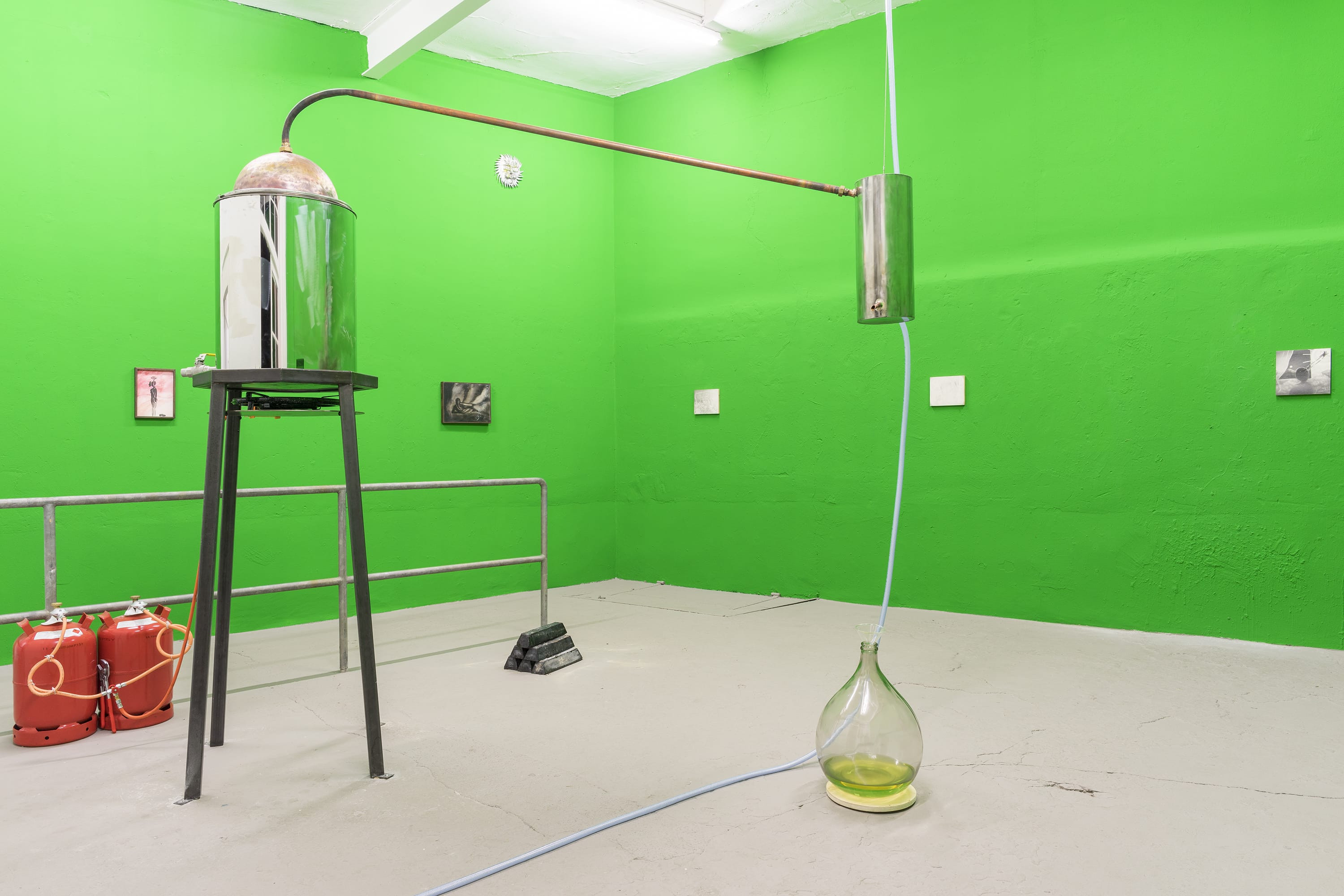 16. Martin Pöll, Alchemia, 2020, Destille, tree resin, gas, water, tube, cooling, Variable dimension